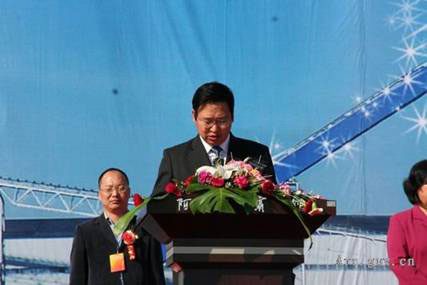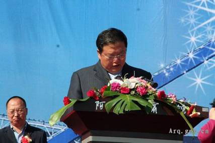 劉埃 林董事長發表了熱情洋溢的講話。他首先代表蒙西集團公司向給予阿榮旗蒙西年產500萬噸熟料基地項目建設大力支持的呼倫貝爾市和阿榮旗黨委、政府以及各有 關部門,金融、電力、設計、施工等單位以及出席本次慶典的各位嘉賓表示了衷心感謝,向工程一線的阿榮旗蒙西全體員工和建設者們表示了親切慰問。他說,阿榮 旗蒙西年產500萬噸熟料基地項目,是蒙西集團深入貫徹落實科學發展觀,遵照“淘汰落后、上大關小、節約能源、合理利用資源”的產業政策,在“十一五”期 間規劃的重大項目,由三條日產5000噸新型干法線和一條年產100萬噸水泥粉磨生產線組成,分三期建成。項目建成后,可實現銷售收入15億元,實現利潤 2.5億,實現稅收2億多元,安排就業1000余人,還可以帶動當地運輸、物流等產業的快速發展,無論是對蒙西集團還是對地方經濟的發展都具有十分重要的 意義。