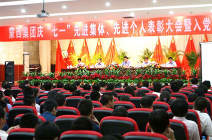 6月30日,蒙西集團在蒙西大廈一樓多功能廳隆重舉行慶“七一”先進集體、先進個人表彰大會暨入黨宣誓儀式。黨委委員孫建國、葉向東、包雙江、王天龍、汪英杰出席大會。